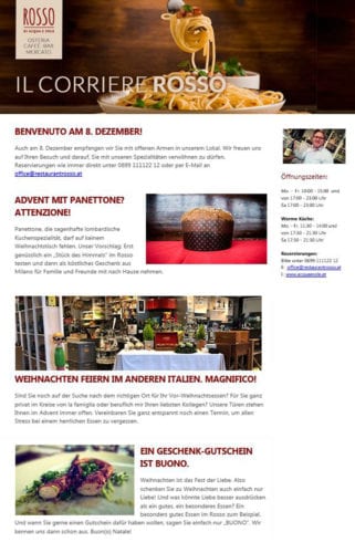 Newsletter für Trattoria. Gestaltung, Text, Handling.