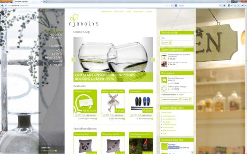 Website für Interieurshop „Fjordlys“ – Integration in bestehendes CMS. Konzeption, inhaltliche, technische und optische Umsetzung inkl. Mehrsprachigkeit, Programmierung der Erweiterungen