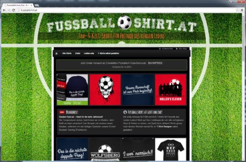 Website für Fußballshirt.at. Screendesign, Struktur, Didaktik und Bildkonzept samt inhaltliche Umsetzung der Website & Gestaltung diverser T-Shirt Motive. www.fussballshirt.at