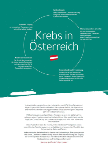 Awareness-Broschüre Krebs in Österreich. Coverkonzept, Visualisierung, Infografiken.
